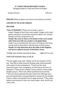 Typical Service Bulletins Regular Service Communion Service